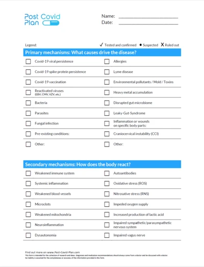 Ready to investigate the root cause of your Post-Covid? Want to know which patient subtype you belong to? This checklist will help you analyze your disease and the different pieces of the puzzle in detail.