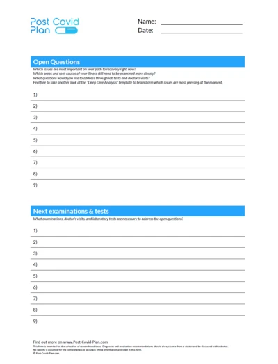 What are your next treatment goals? Which labs and tests are still outstanding? This template helps you plan your next steps on the journey to recovery.